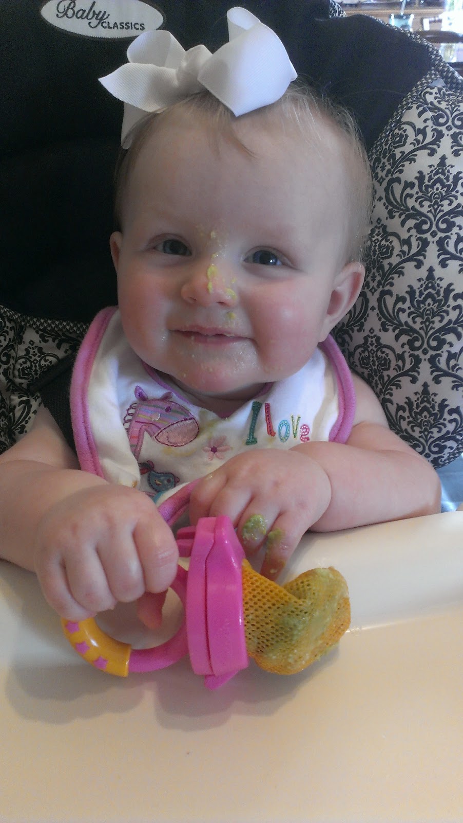 I don’t think that Nora has changed as much in a one month period as she has this past one. It’s almost as if she wakes up a bigger, more expressive, more enlightened baby every morning. This is so every exciting, but I also feel a little sad every time I realize just how much bigger she is getting. According to the home scale, she is just a bit over 18 pounds. She is officially closer to a one year old than she is to a newborn now, and it definitely shows in what all she can do….or is trying to do, for that matter. I never knew that I could find such joy in watching her figure out life and the world around her.