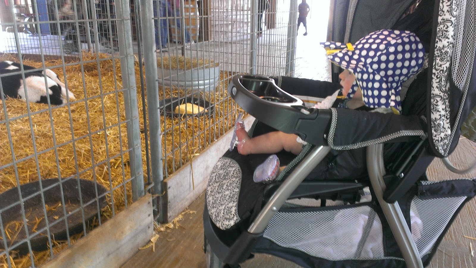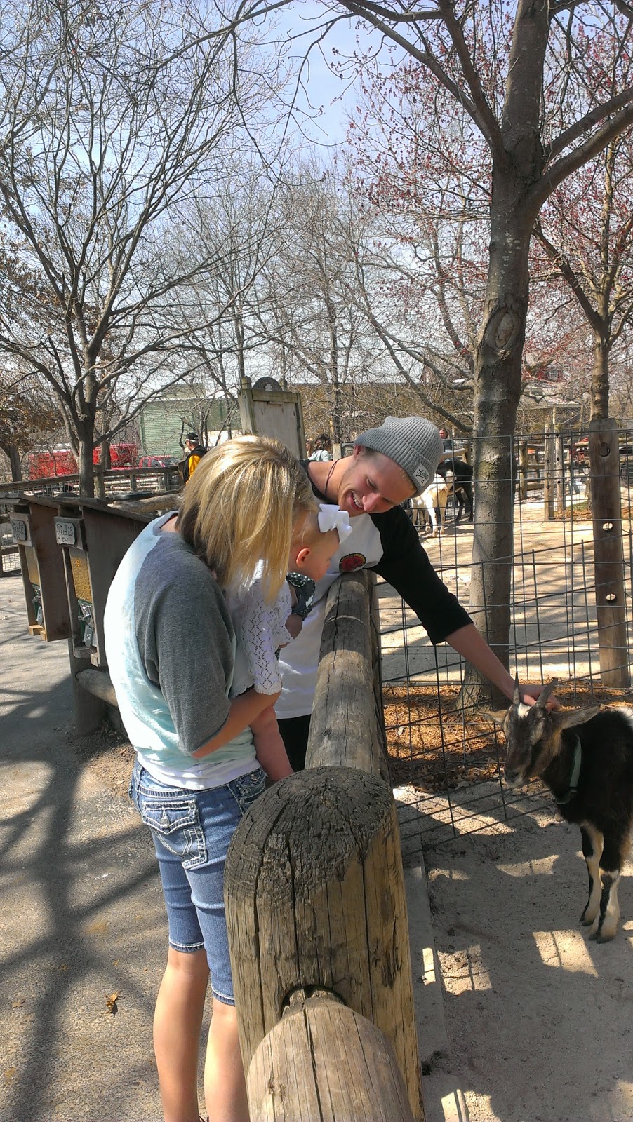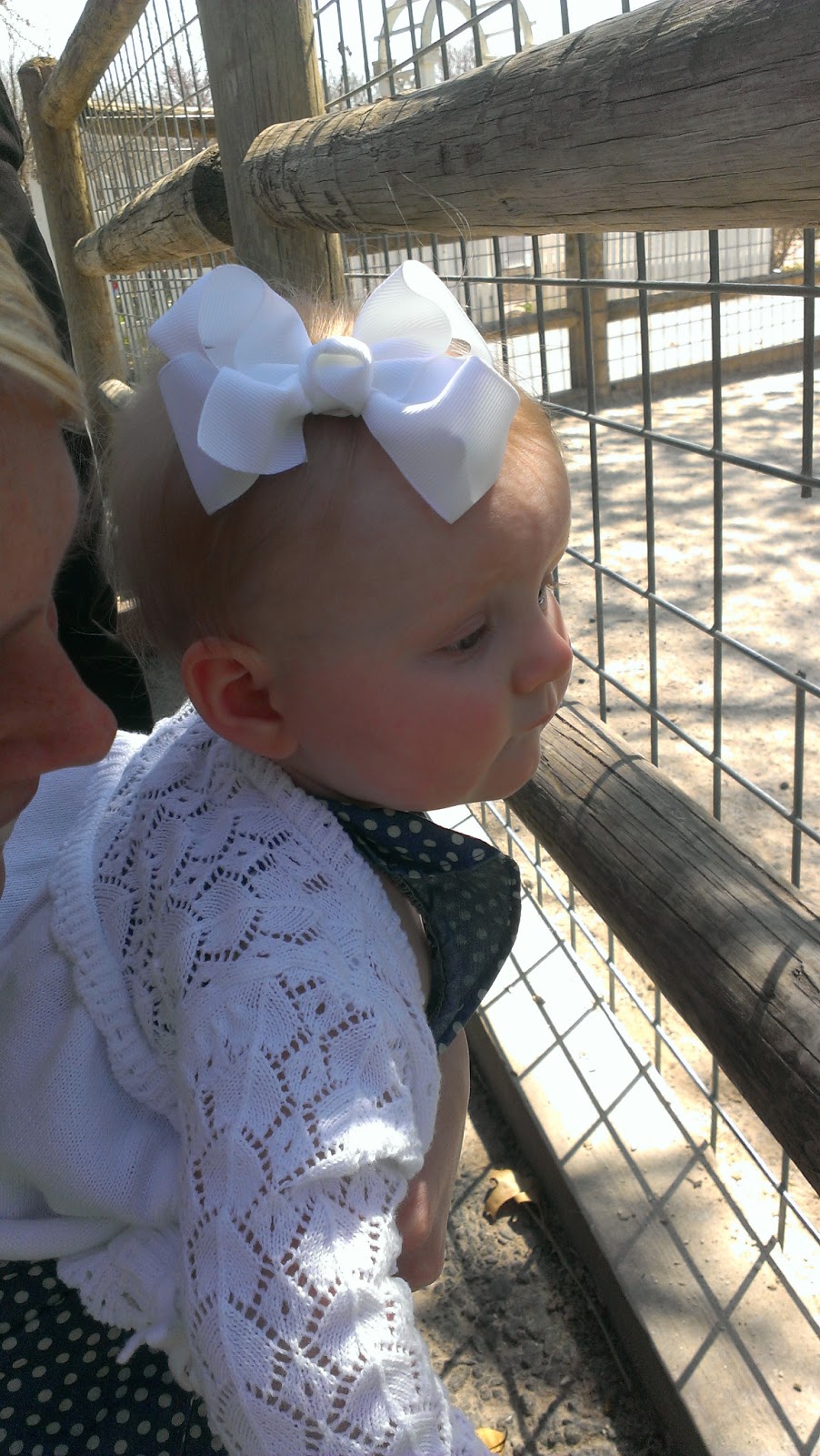 Fast forward to last Friday… Nora had done wonderful with the cows back on the farm last weekend and we had a 70 degree day, so I decided to load her up and take her for her first visit to the petting zoo. My mom and Jared decided to tag along and I’m so glad they did. I won’t lie, I got a little giddy when we pulled into the parking lot – I was finally taking MY baby girl to Deanna Rose. I have often thought over the years how much fun it would be to take my children there someday, and now I was finally doing just that. Here are a few shots we were able to get…