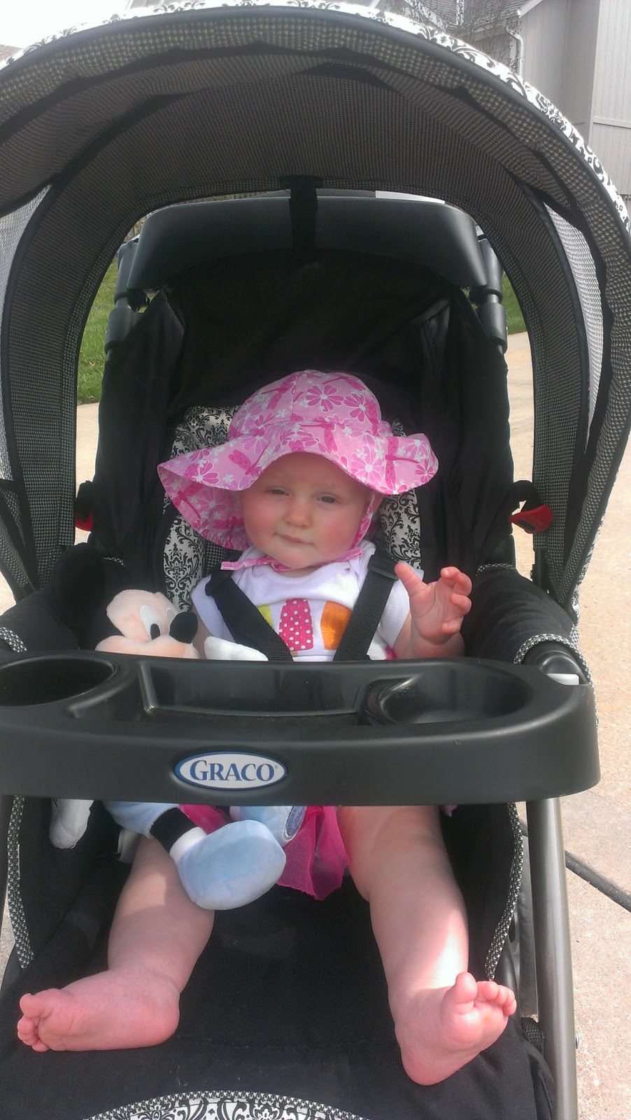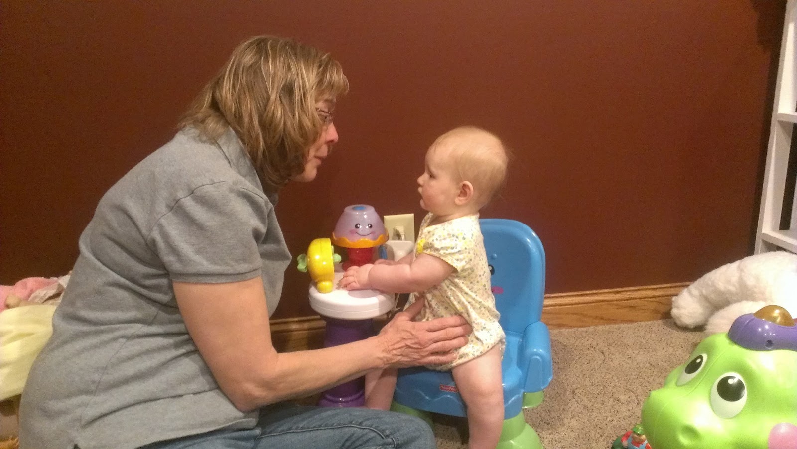 Sheila inherited numerous toys from Eric’s cousin, Lindsey. Nora LOVES sitting up like a big girl in this one.