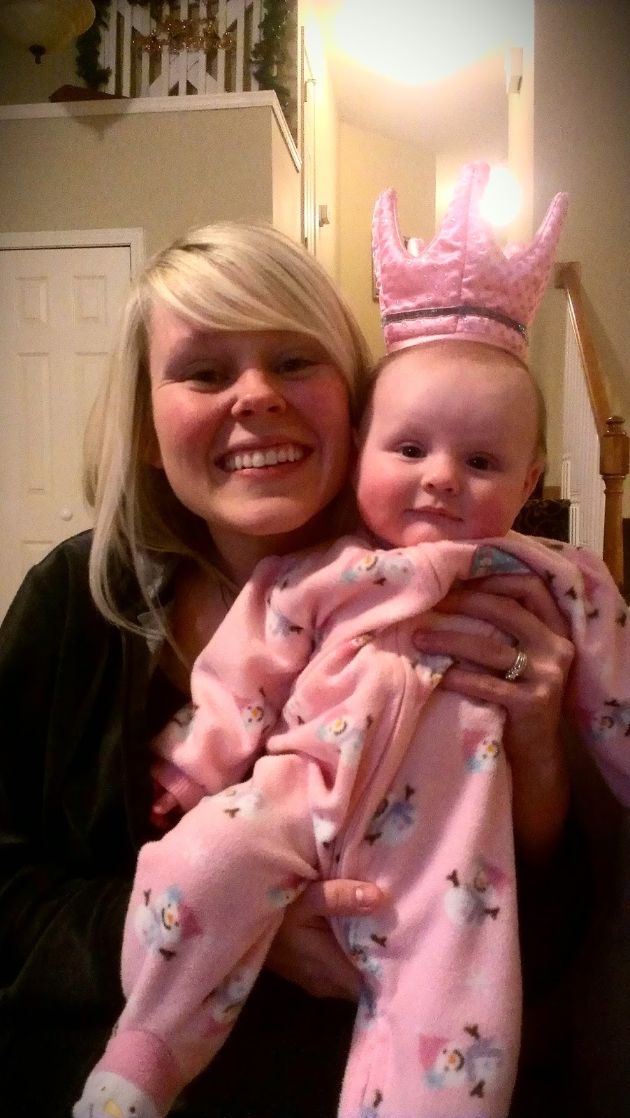 Snowman jammies from my mom and her princess crown – worn while watching the Miss America Pageant.